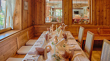 Was in unserem Genusshotel im Ahrntal auf dem Teller landet, sind echte Naturschätze. Aus dem Wald direkt in den Topf. Vom Garten in die Schüssel. Vom Nachbarhof ins MOLIN. Je näher an der Küchentür, desto besser. Unsere traditionellen Stuben empfangen Sie morgens zum ausgedehnten Frühstück, nachmittags zum leichten Wellnessbuffet und abends zum 5-Gang-Wahlmenü, Galadinner oder Themengenuss.