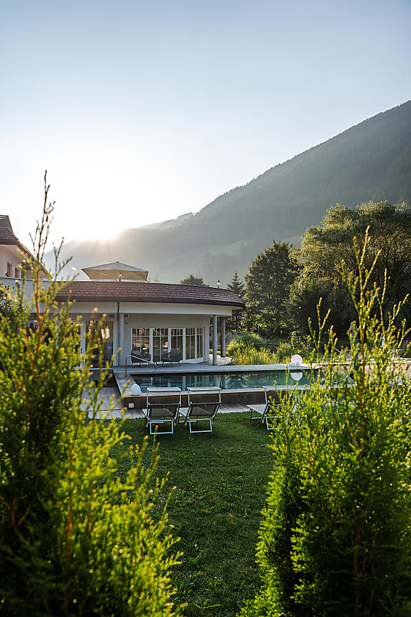 Natur tut gut. Und um die Natur dreht sich auch Ihre Wellness-Auszeit im Ahrntal. Unser Spa-Bereich steht ganz im Zeichen der Elemente. Wasser spendet Kraft – mal im warmen Hallenbad, mal im erfrischenden Badeteich oder im neuen ganzjährig beheiztem Outdoor Pool. Alpine Luft weckt die Sinne, Wärme lockert die Muskeln und im Ruheraum erdet ein Traumblick ins Grüne. Egal, wo Sie durchatmen, egal wie Sie entspannen: Wellness im Ahrntal schenkt viele gute Gedanken.