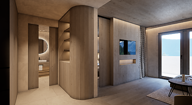 The spacious new suites for 2 to 4 persons on the 3rd floor with balcony have a cozy living room, bathroom with shower, separate toilet with bidet and are equipped with designer refrigerator, hair dryer, makeup mirror, bathrobe, 2 TVs, W-LAN, safe and telephone.
