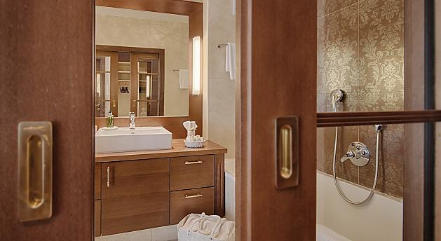 Le Junior suite da 2 a 3 persone con terrazza esposta a sud ed un giardino loggia privato sono dotate di pavimento in legno, una scrivania, un bagno con doccia e vasca, WC separato e bidet e sono attrezzate con asciugacapelli, specchio da trucco, accappatoio, TV, WiFi, cassaforte e telefono.