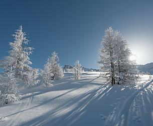 Fin dove spazia la vista, dall’albergo le cime bianche si allineano come fili di perle. I sentieri escursionistici invernali e le piste di sci di fondo ad alta quota si snodano attraverso il paesaggio. Nel cuore di tutto questo, due aree sciistiche diverse dalle altre.
